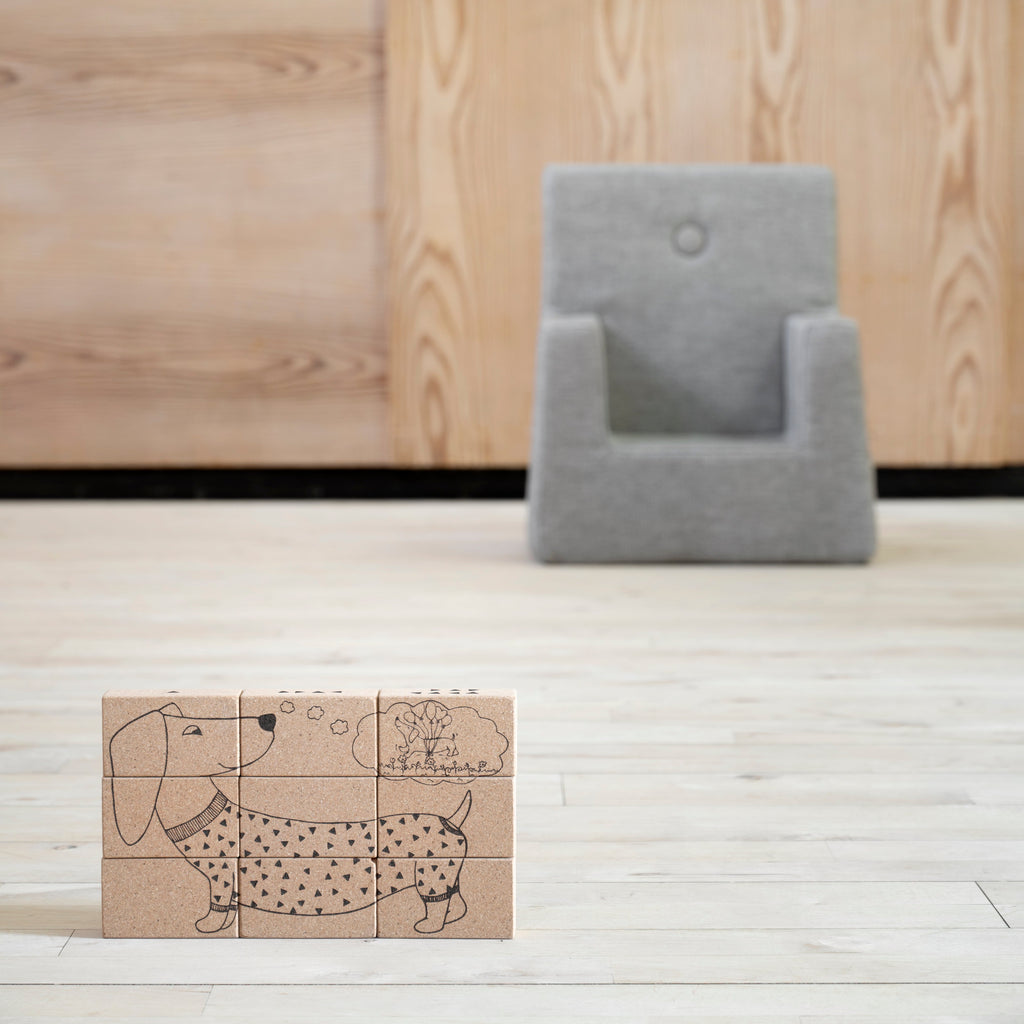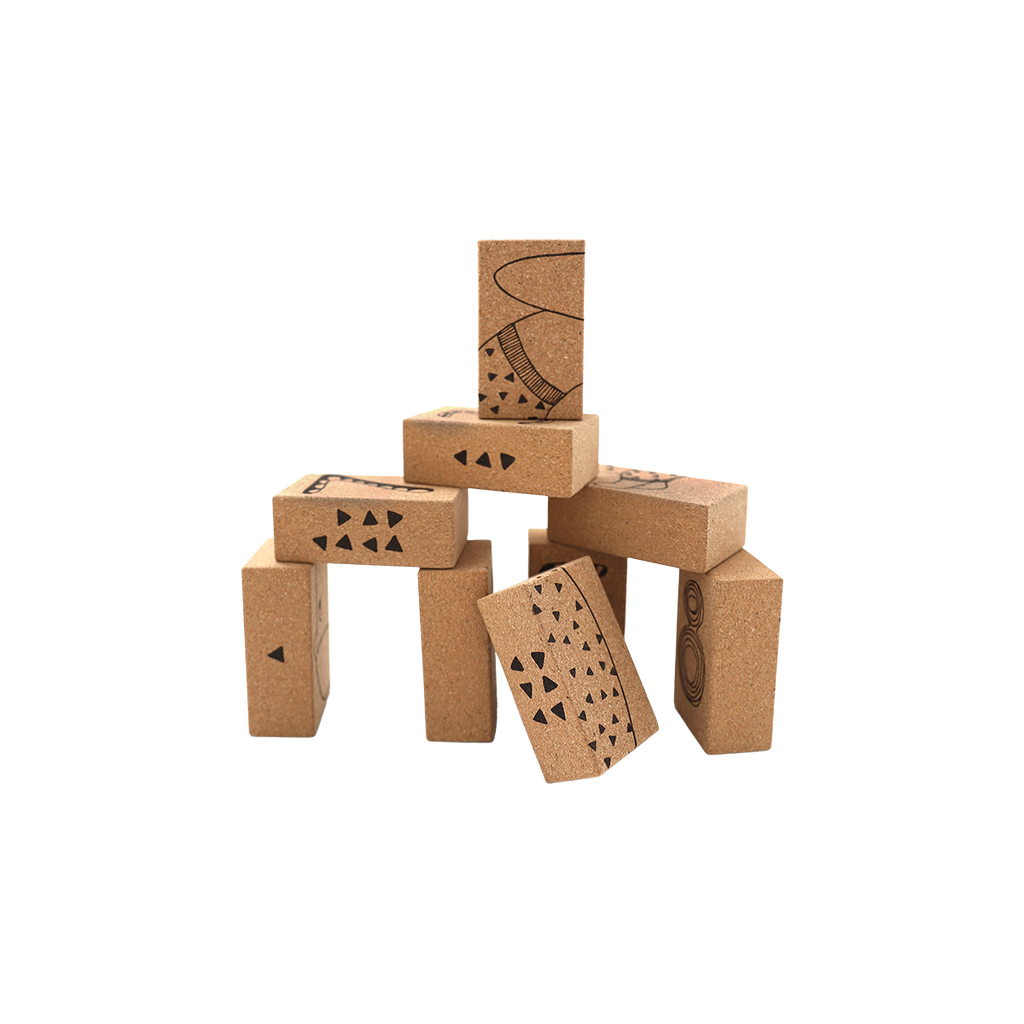 These nine cork blocks are not only perfect for stacking and building – they’re also designed as a fun and educational puzzle that grows with your child. Each block features different laser-printed sides with elements that support early learning through play.