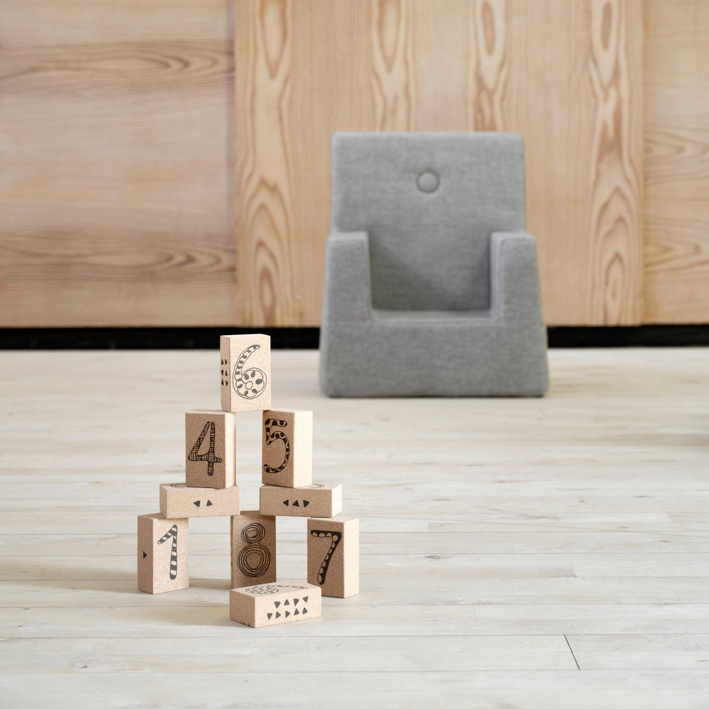 These blocks are made of cork – a natural, tactile material that’s perfect for small hands.